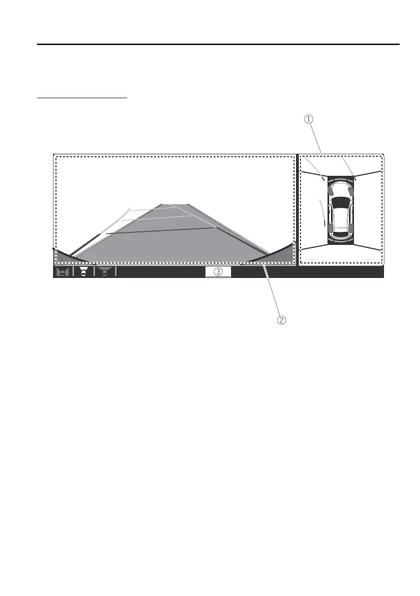 Displays the image of the area around the vehicle and the vehicle front.