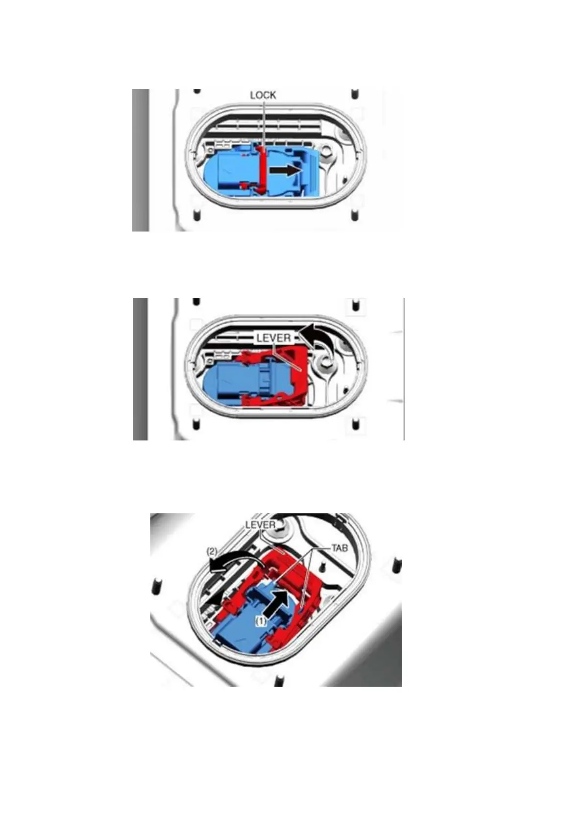 (3) Press the area indicated by arrow (1) shown in the figure, release the tabs, and then
