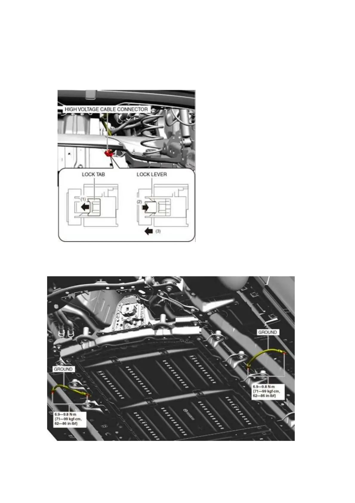 21) Wear insulating gloves and disconnect the high voltage cable connector shown in the figure.