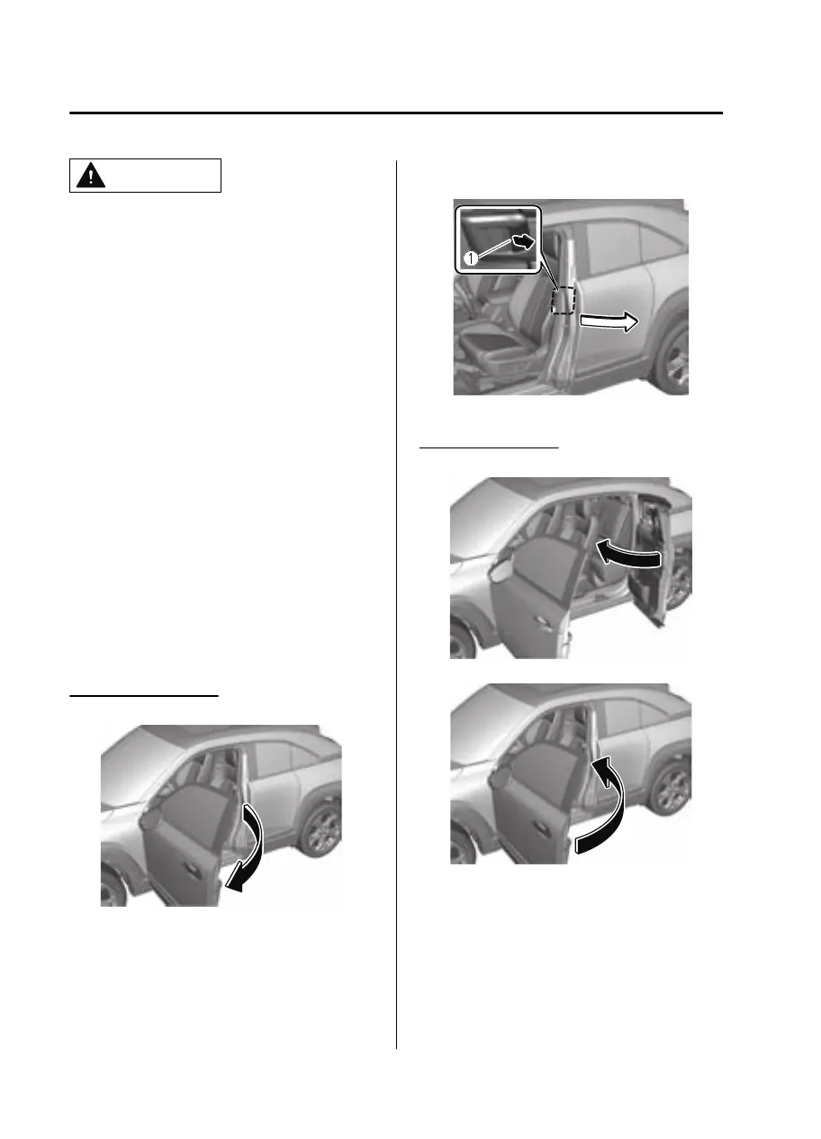 When opening the rear door, do not