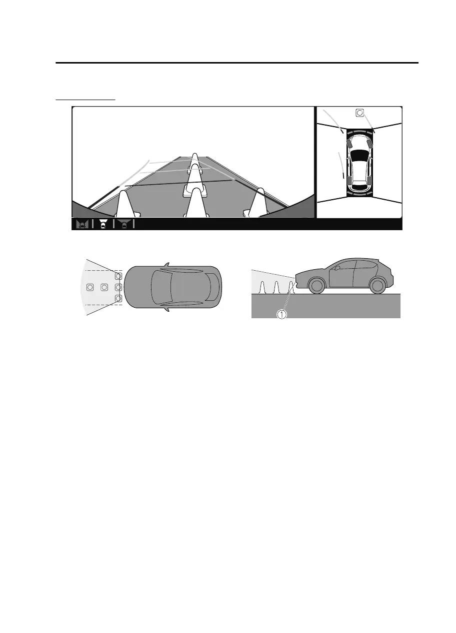 In the top view screen, the areas in black at the front and rear of the vehicle image