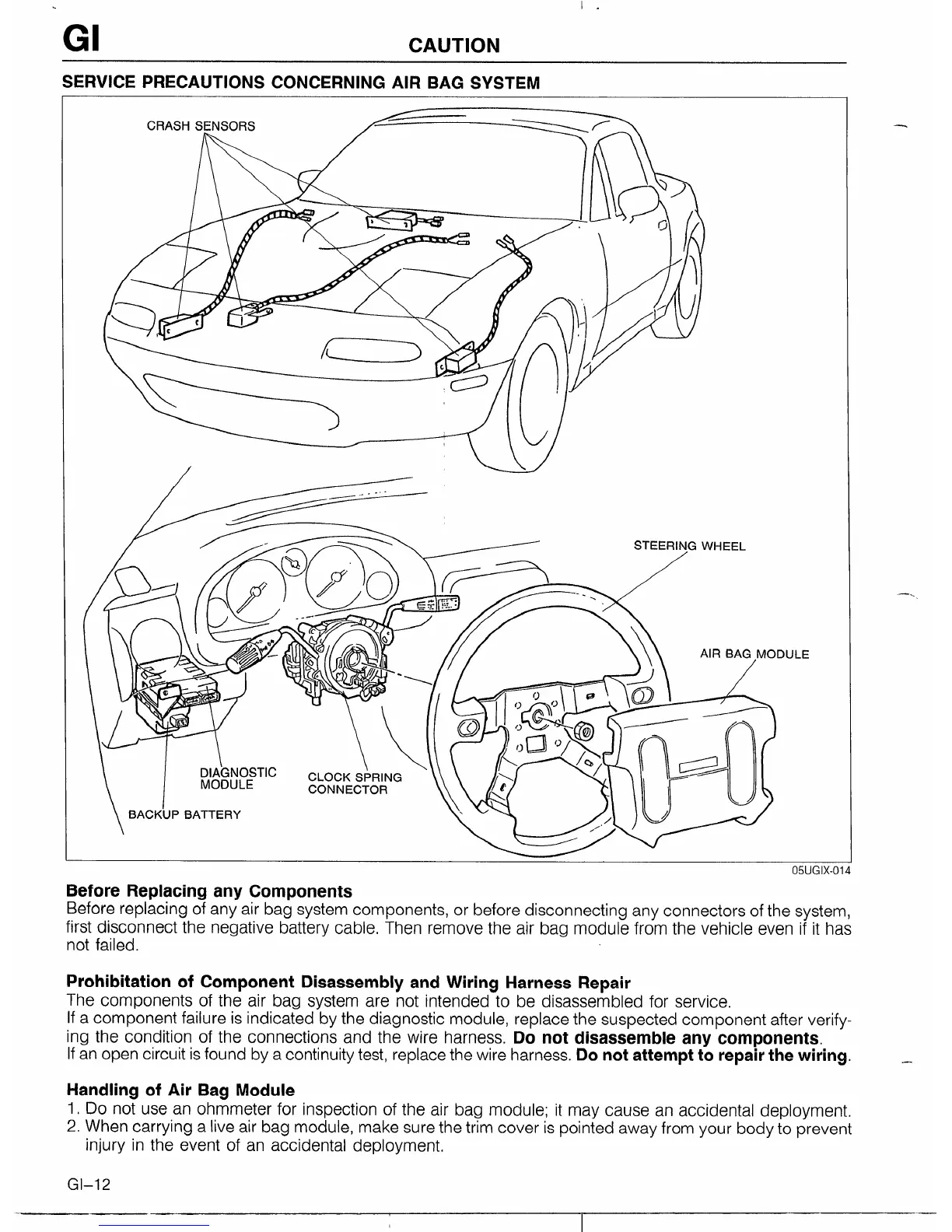 Mazda MX-5 1990 - Service Precautions Concerning Air Bag System