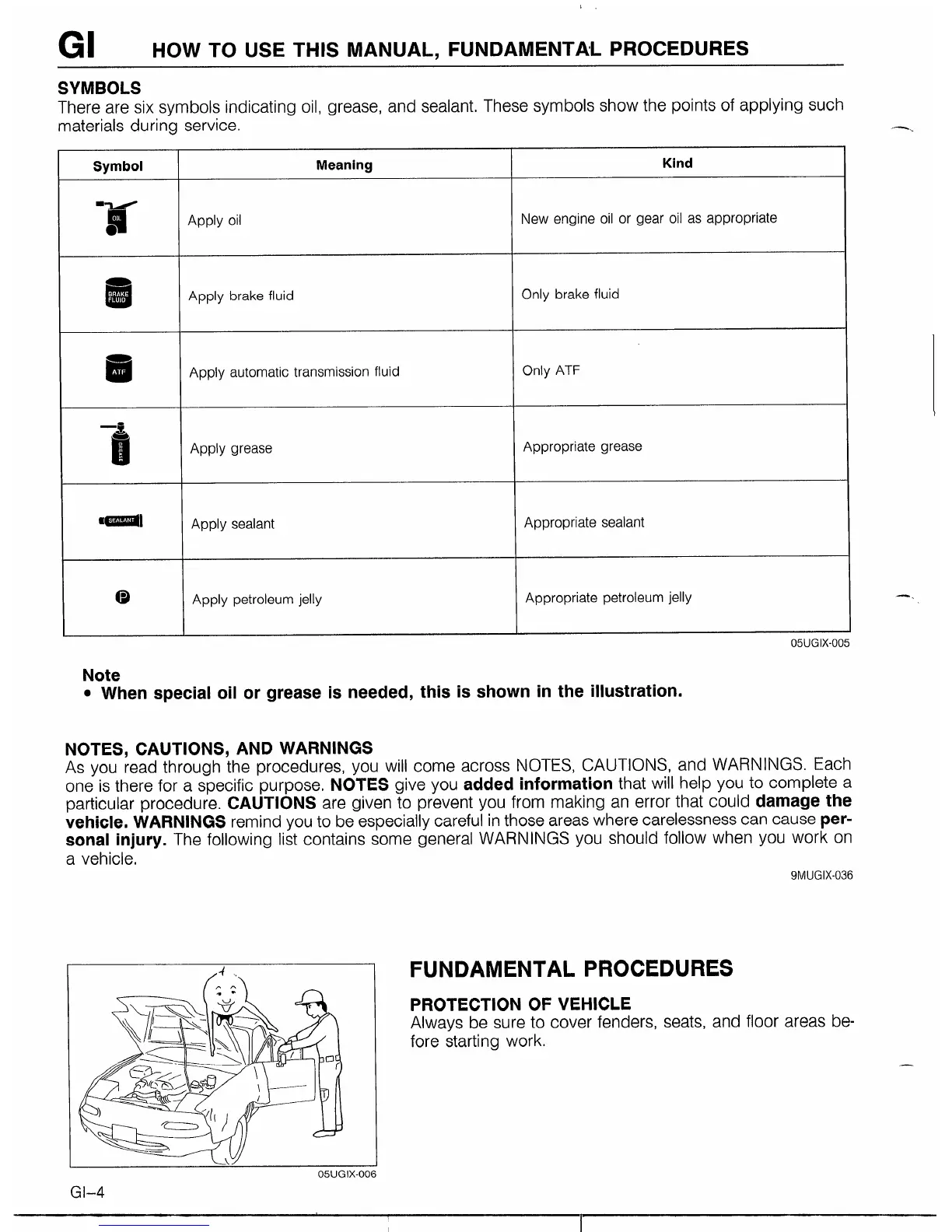 Mazda MX-5 1990 - Fundamental Procedures; Notes, Cautions, and Warnings