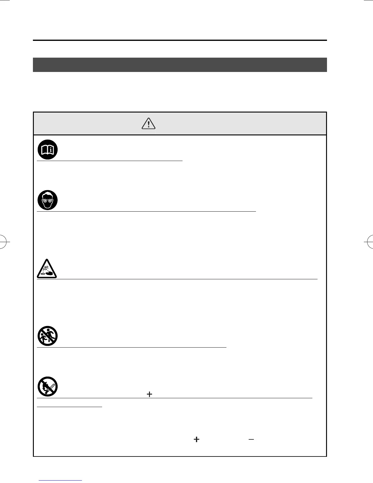 Do not allow the positive ( ) terminal to contact any other metal object that