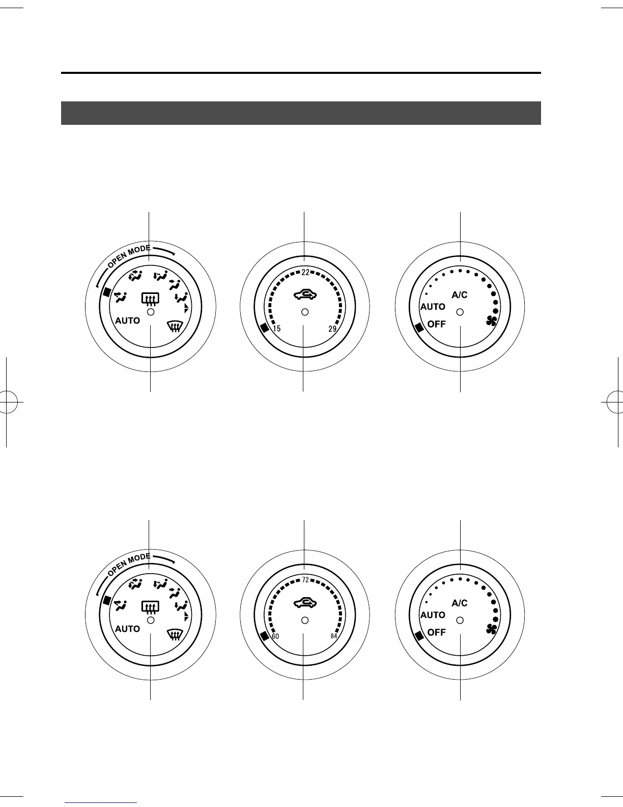 Mode selector dial Temperature control dial Fan control dial