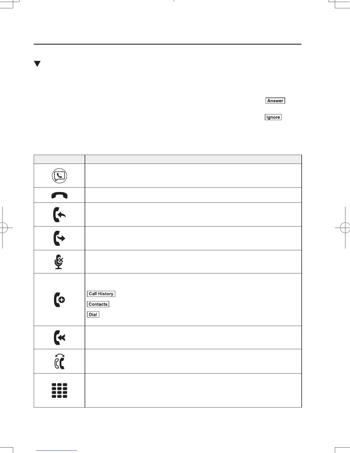 The following icons are displayed on the screen during a call. Icons which can be used differ