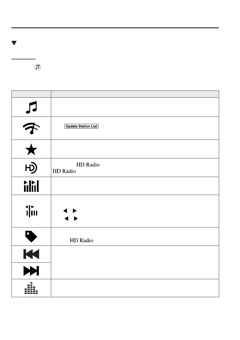 the desired radio, the following icons are indicated in the lower part of the center display.