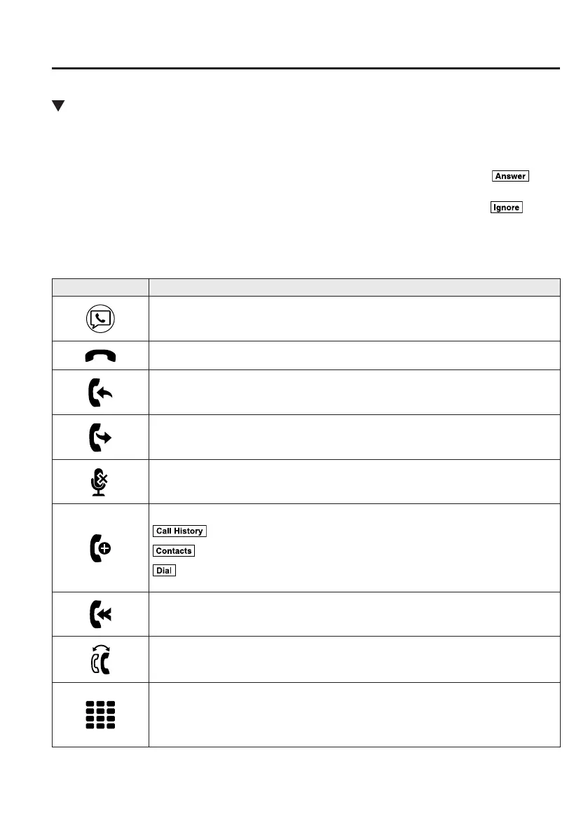 The following icons are displayed on the screen during a call. Icons which can be used differ