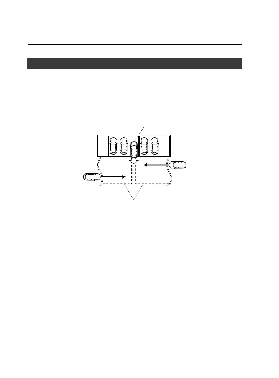 The RCTA system detects vehicles approaching from the rear left and right sides of the