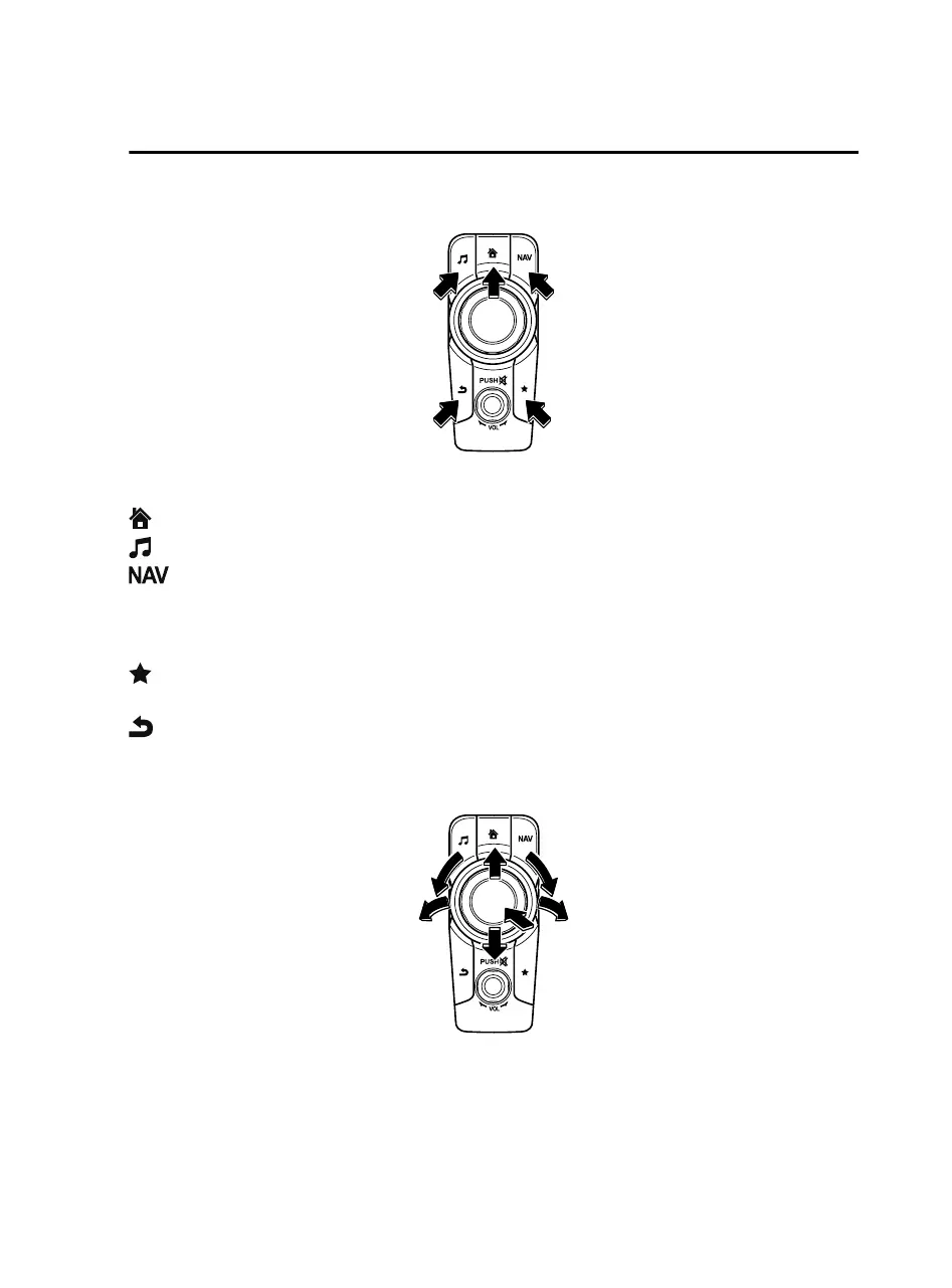 : Displays the Favorites screen. Long-press to store particular items in Favorites. (Radio,