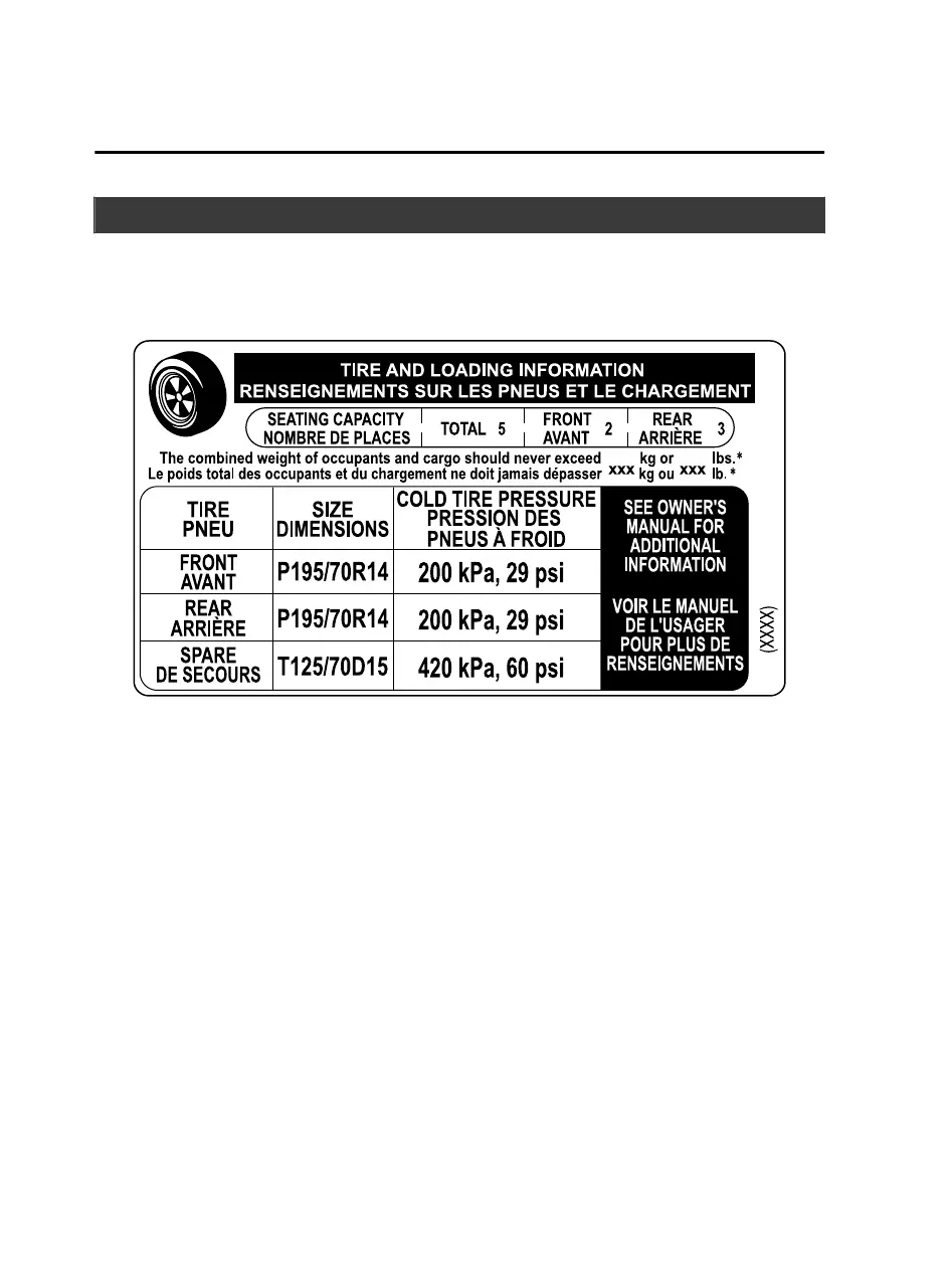 On the tire label you will find the recommended tire inflation pressure in both kPa and psi