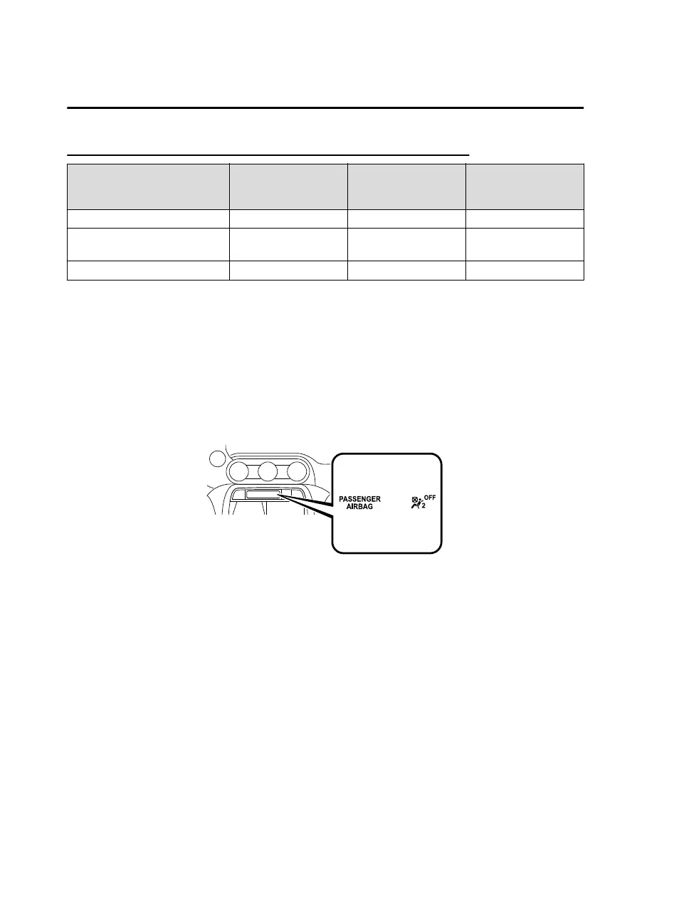 indicator light on/off condition chart, do not allow an occupant to sit in the passenger seat