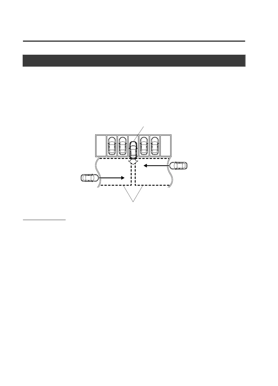 The RCTA system detects vehicles approaching from the rear left and right sides of the