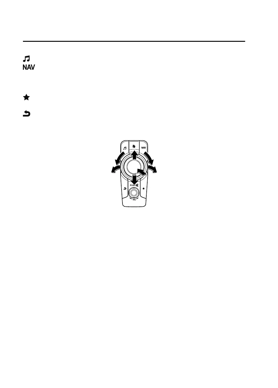 : Displays the Favorites screen. Long-press to store particular items in Favorites. (Radio,