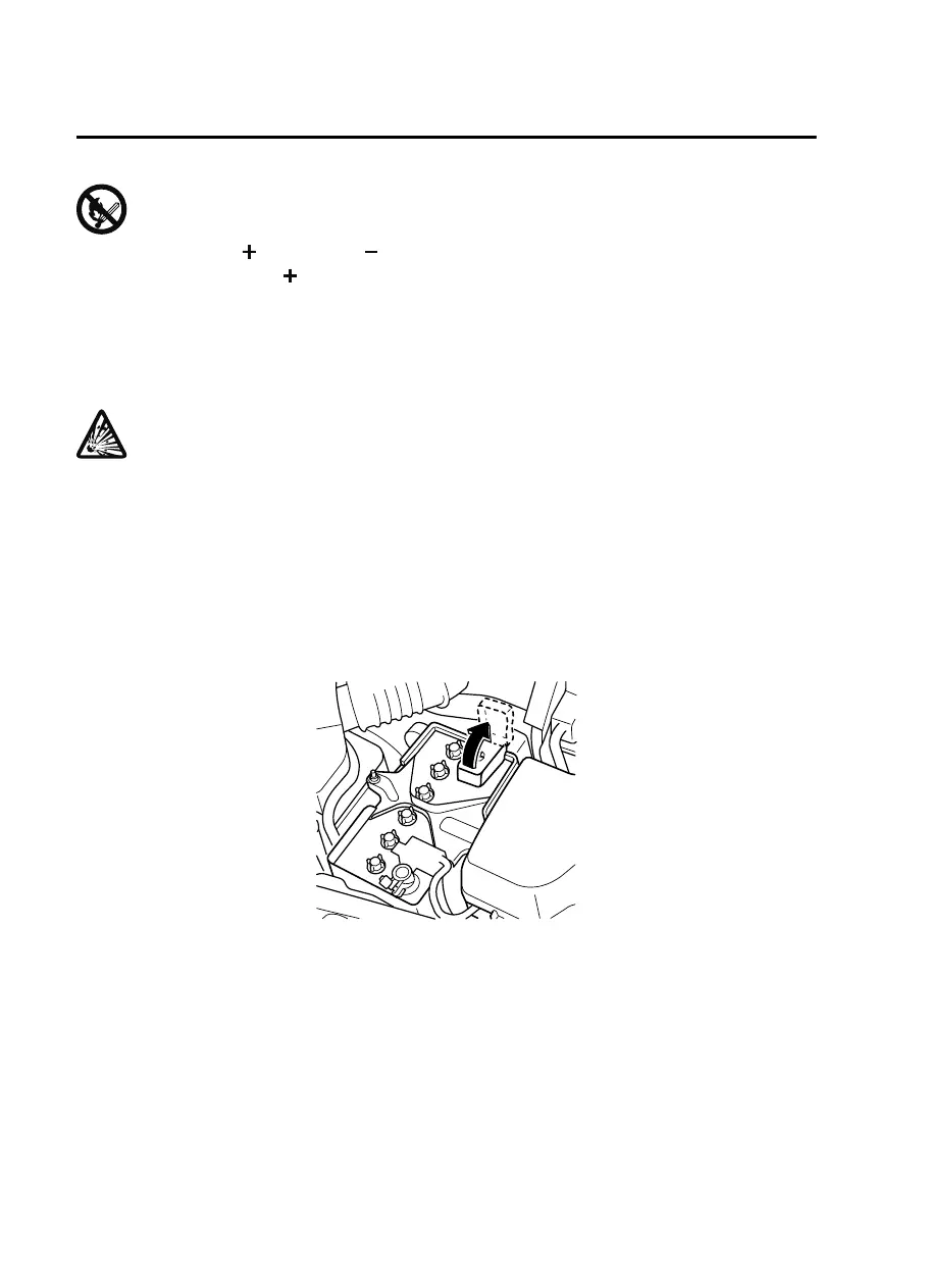 Keep all ames and sparks away from open battery cells because hydrogen gas is