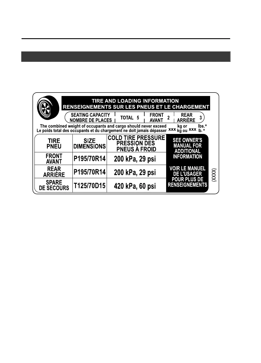 for the tires installed as original equipment on the vehicle. It is very important that the