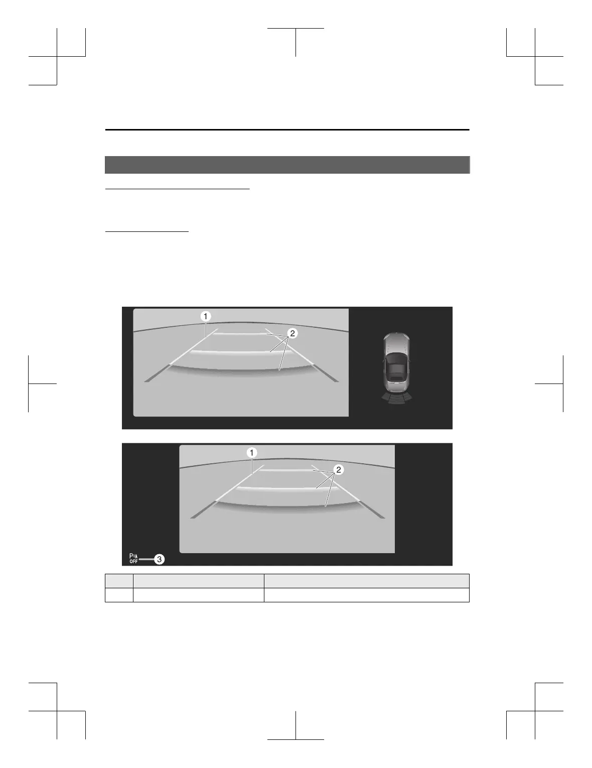 1 Vehicle width guide lines (yellow) Indicates the approximate width of the vehicle.