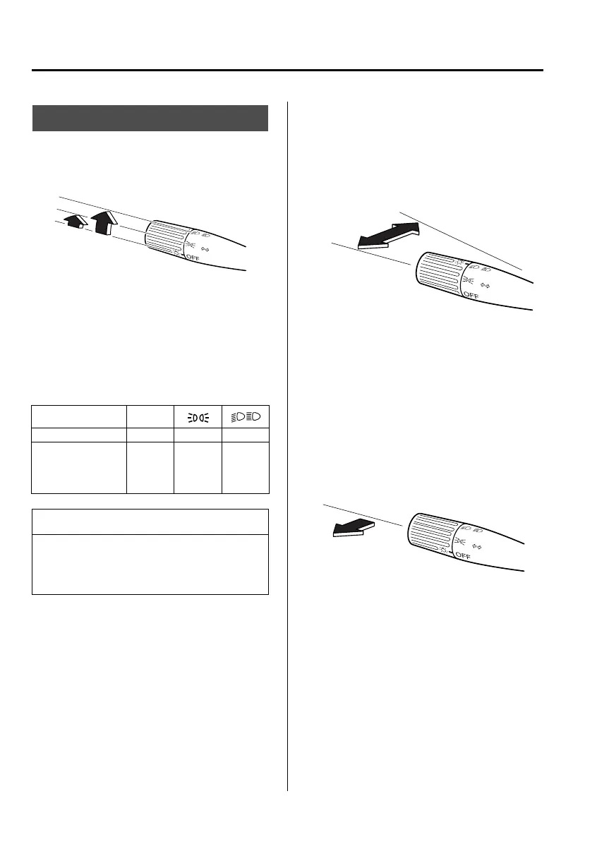 Push the lever forward for high beam.