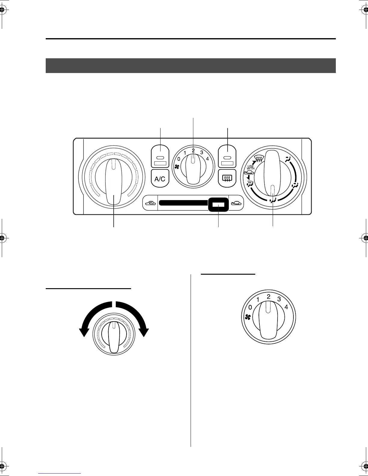 Temperature control dial Air intake selector Mode selector dial