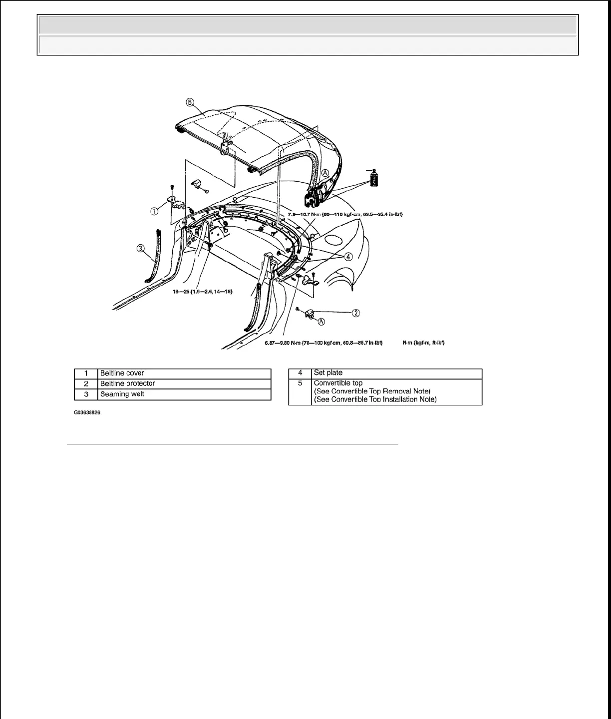 CONVERTIBLE TOP REMOVAL NOTE