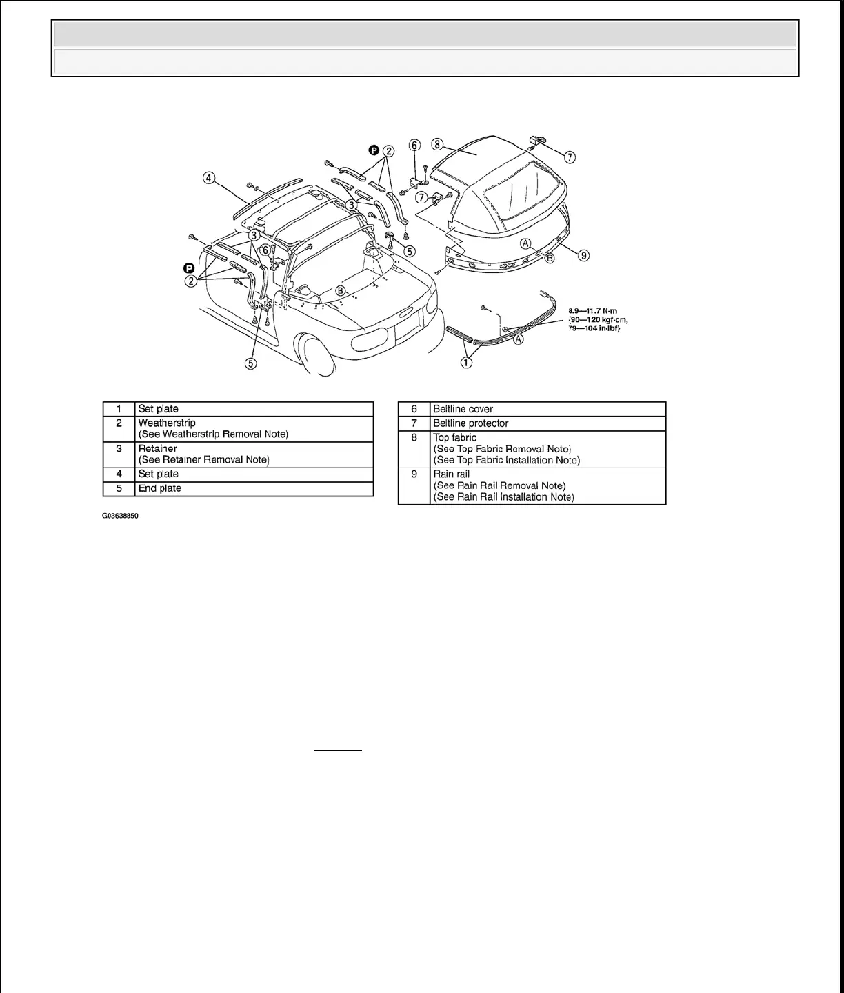 Fig. 47: Removing Top Fabric - With Torque Specifications