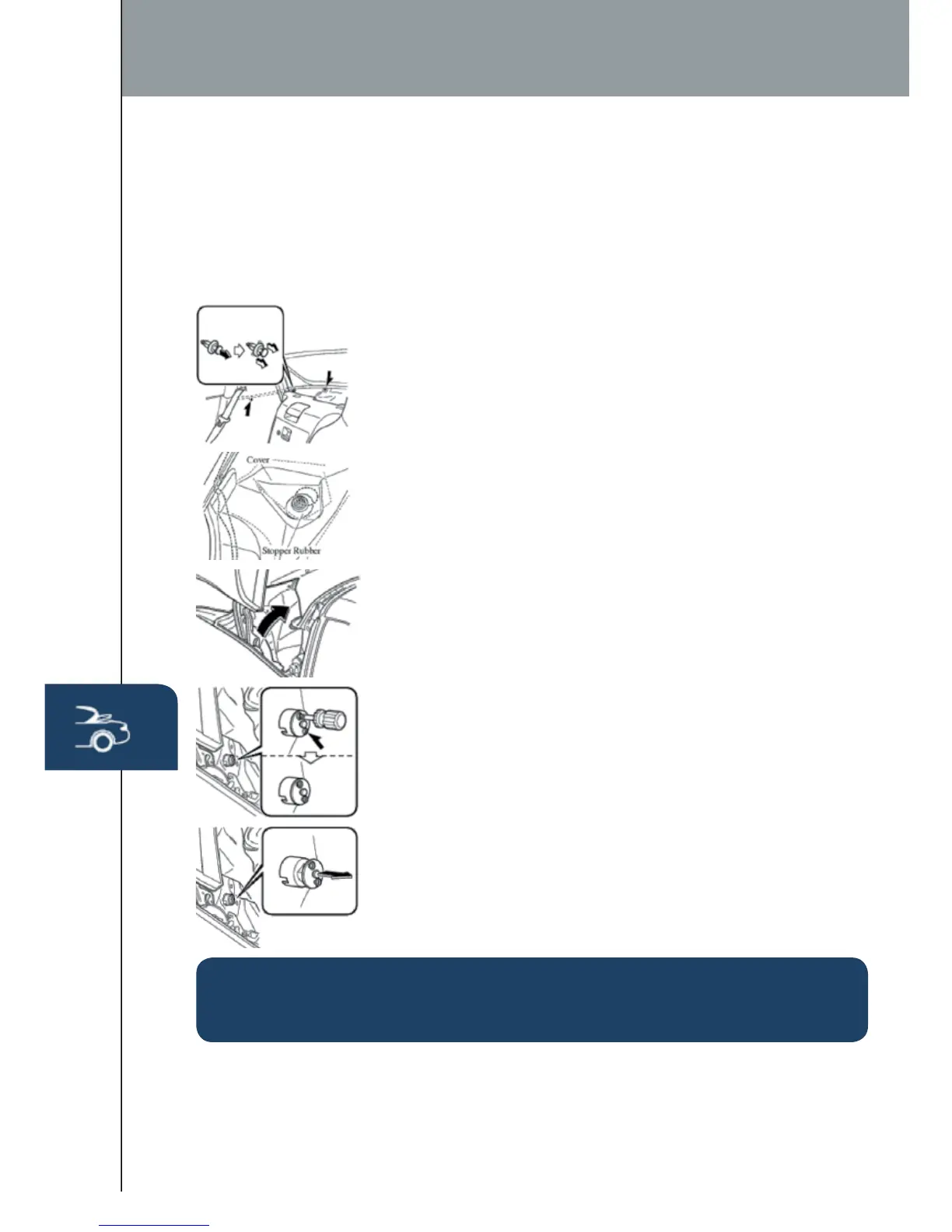 7 Pull out the cap and release the trunk lock.