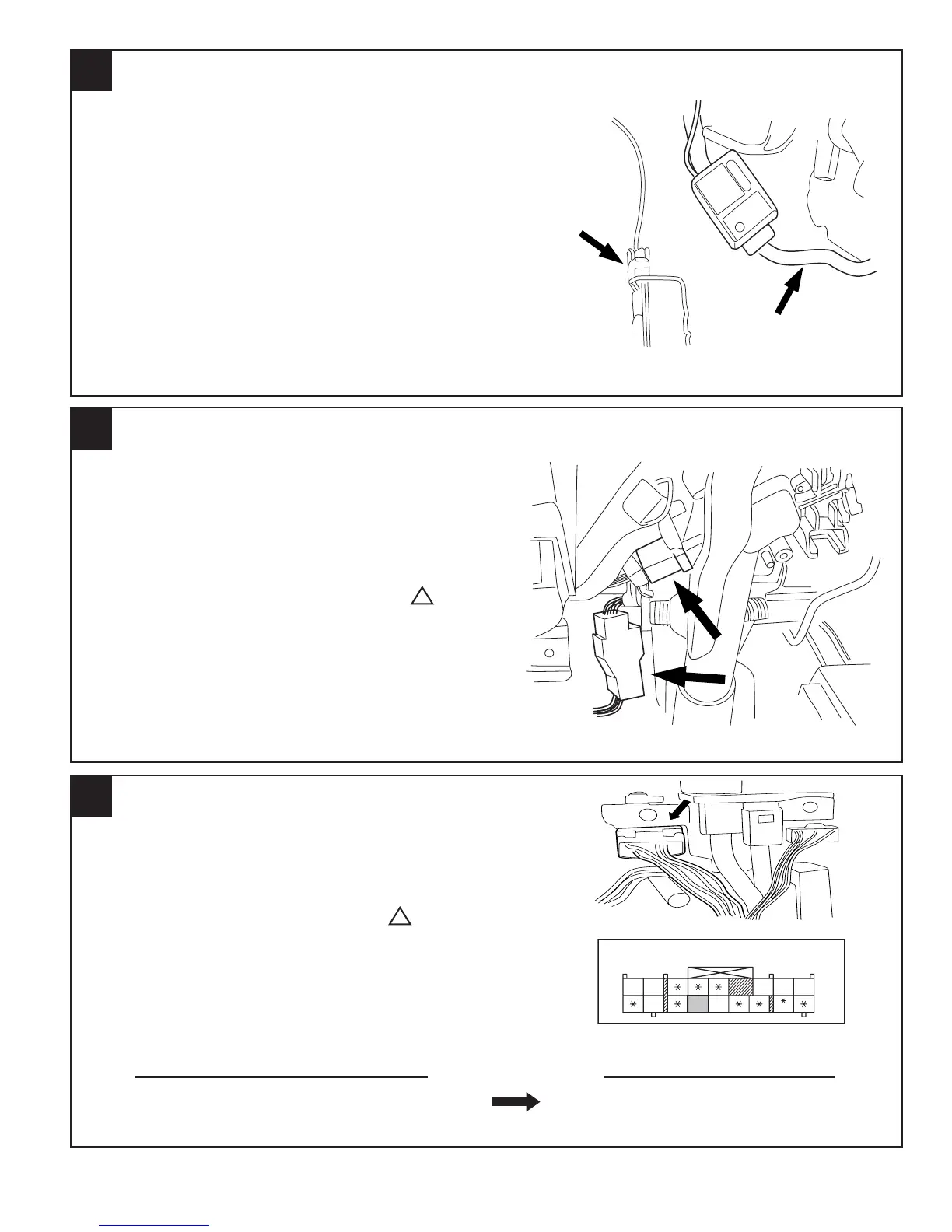 1. ROUTE THE SECURITY HARNESS WITH 6-PIN MALE AND FEMALE