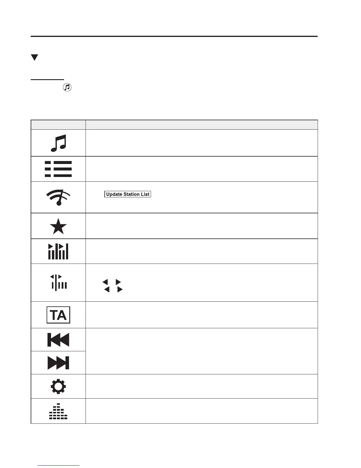 the desired radio, the following icons are indicated in the lower part of the centre display.