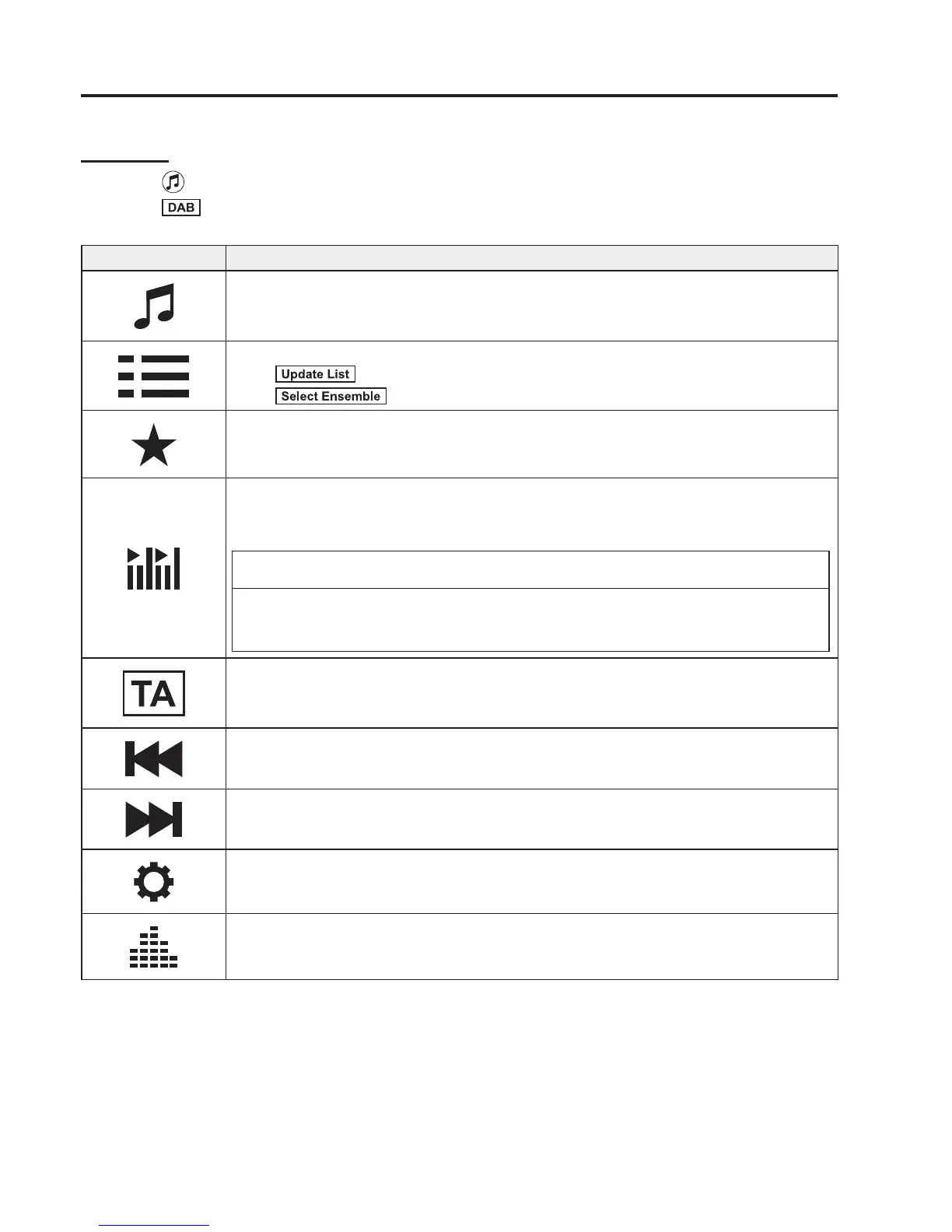 Displays the favourites list. Press and hold to store the currently tuned station to the