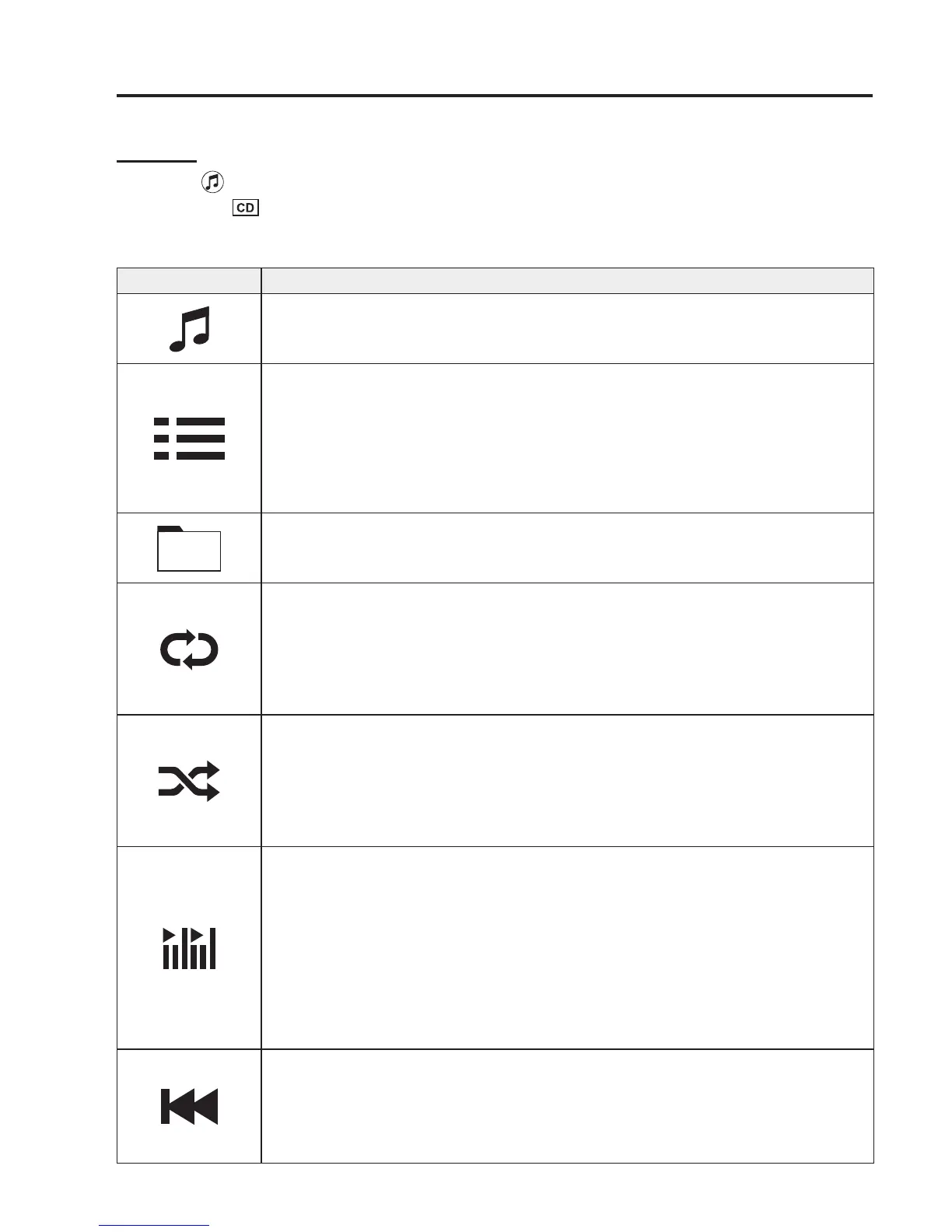 When selected again, the songs on the CD are played in random order.