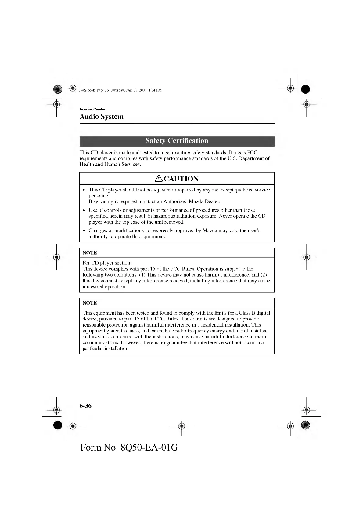• Changes or modifications not expressly approved by Mazda may void the user’s