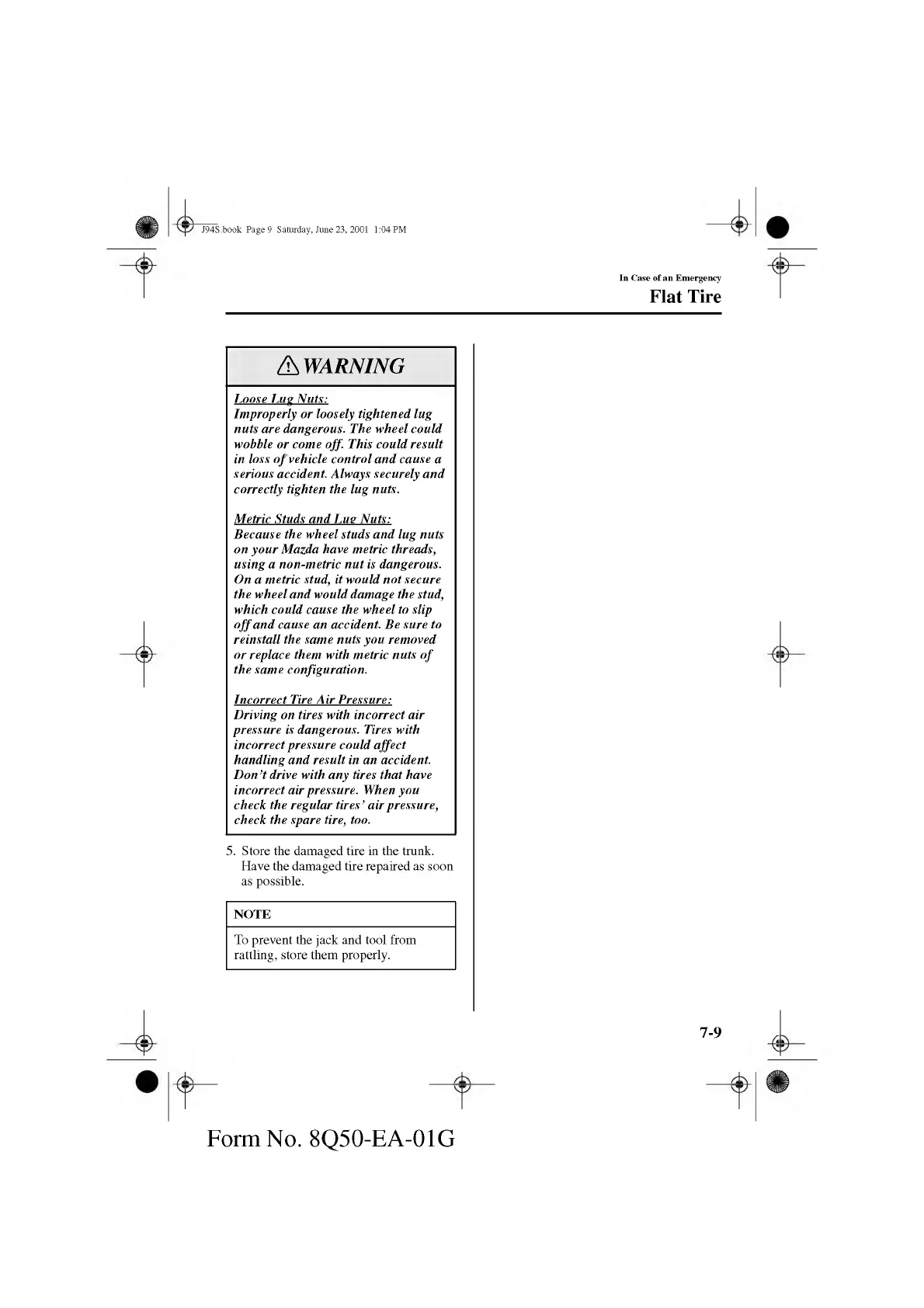 5. Store the damaged tire in the trunk.