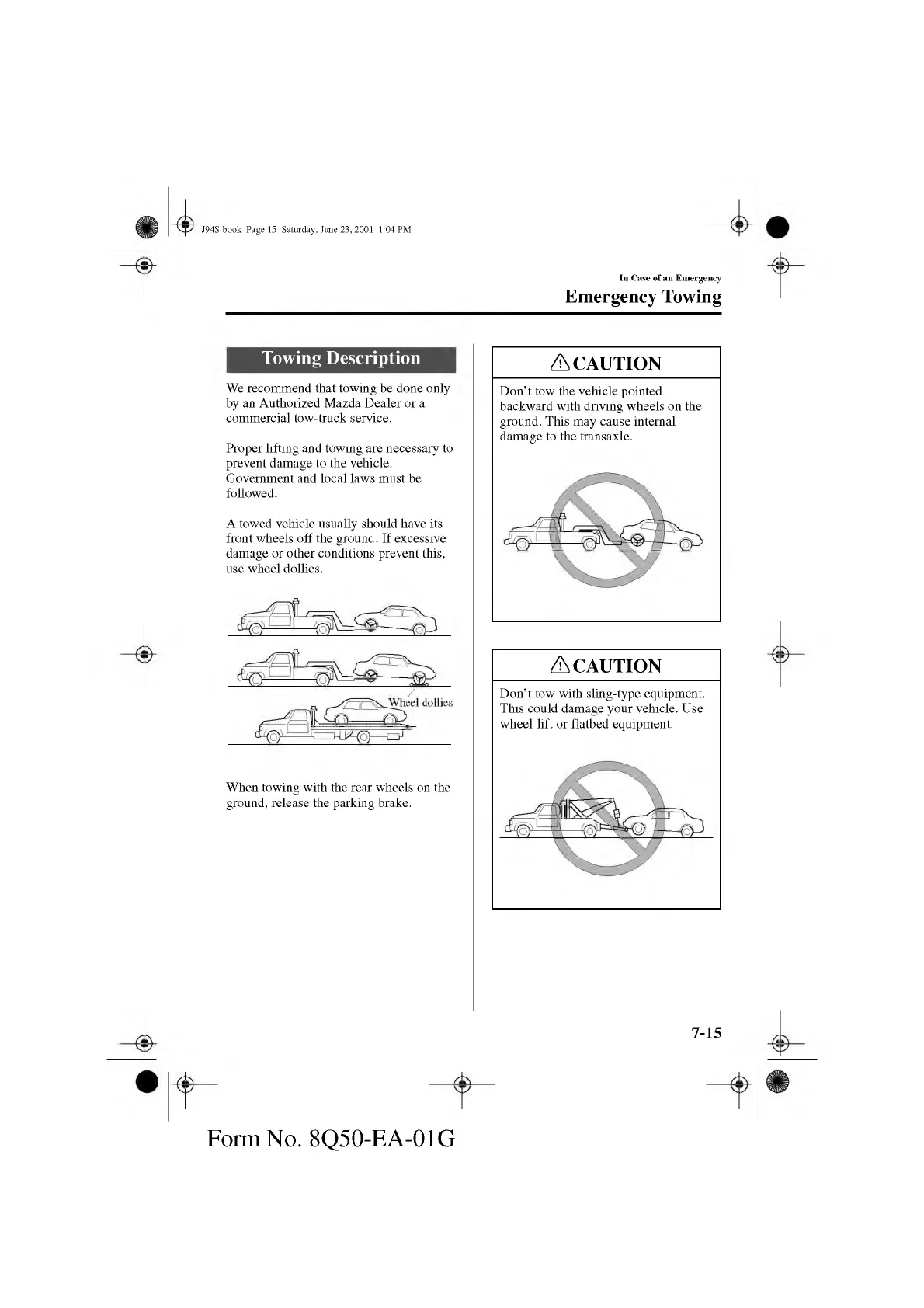 Don’t tow the vehicle pointed