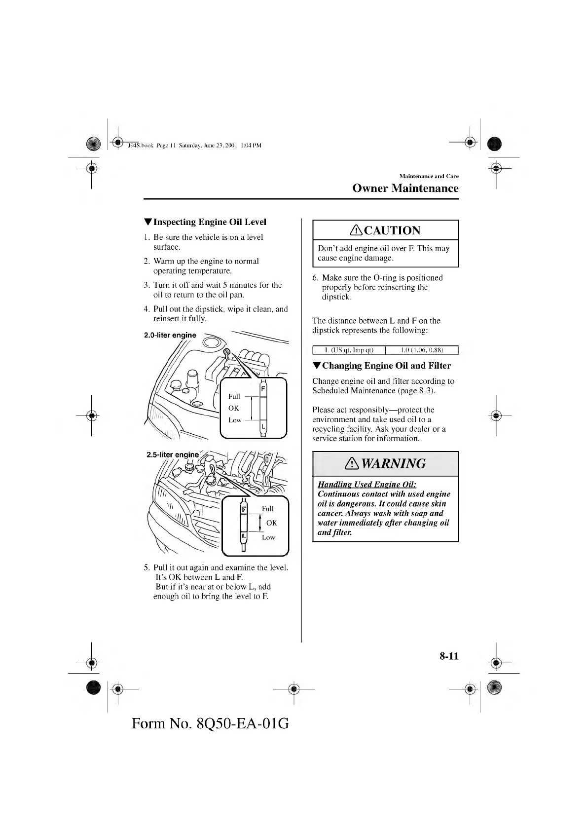 Don’t add engine oil over F. This may
