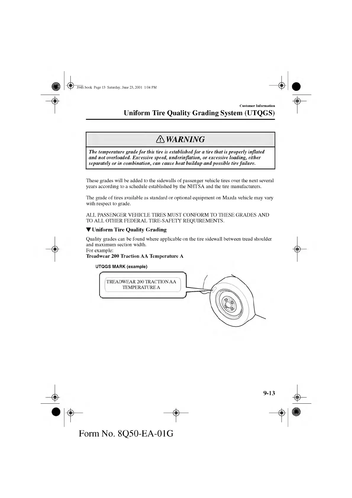 The grade of tires available as standard or optional equipment on M azda vehicle may vary