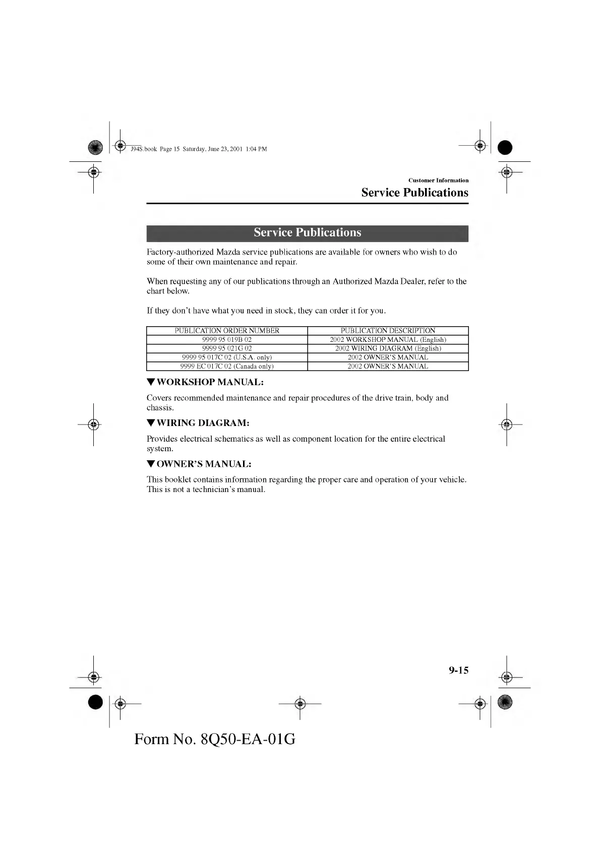 W hen requesting any of our publications through an Authorized Mazda Dealer, refer to the