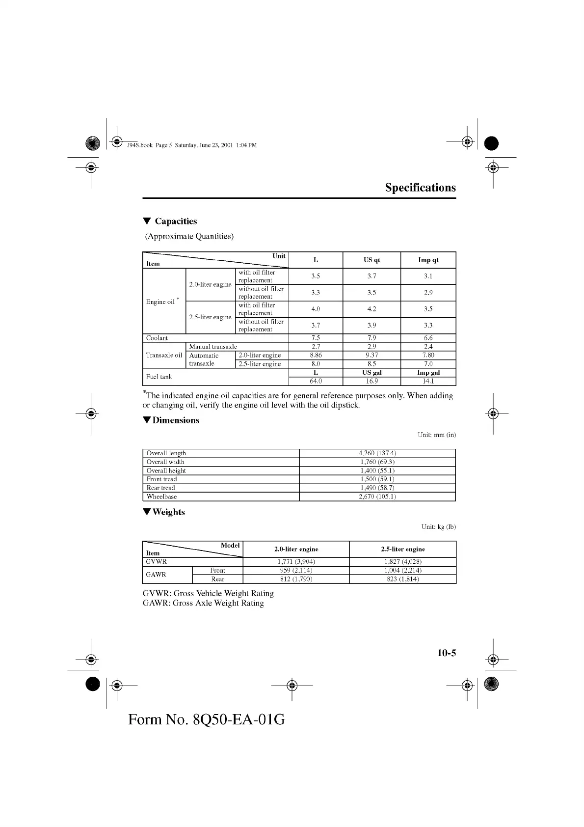 The indicated engine oil capacities are for general reference purposes only. W hen adding