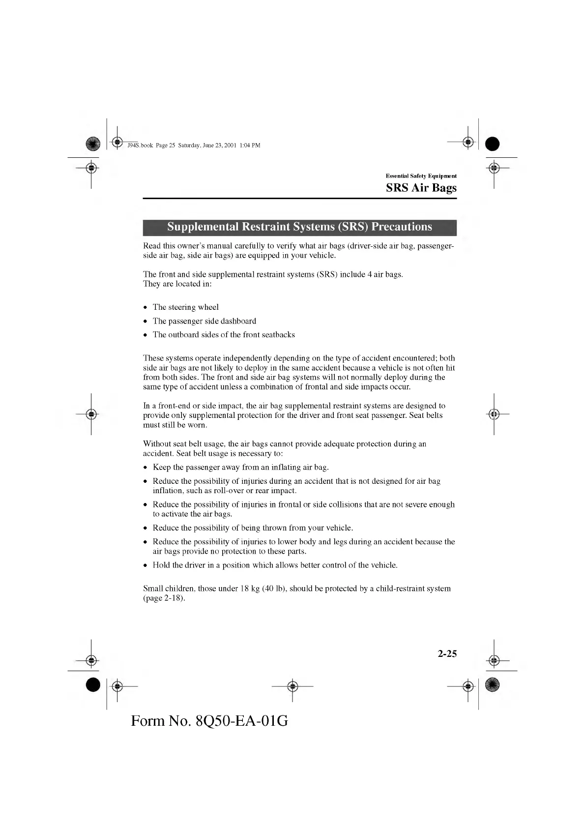Read this owner’s m anual carefully to verify what air bags (driver-side air bag, passenger-