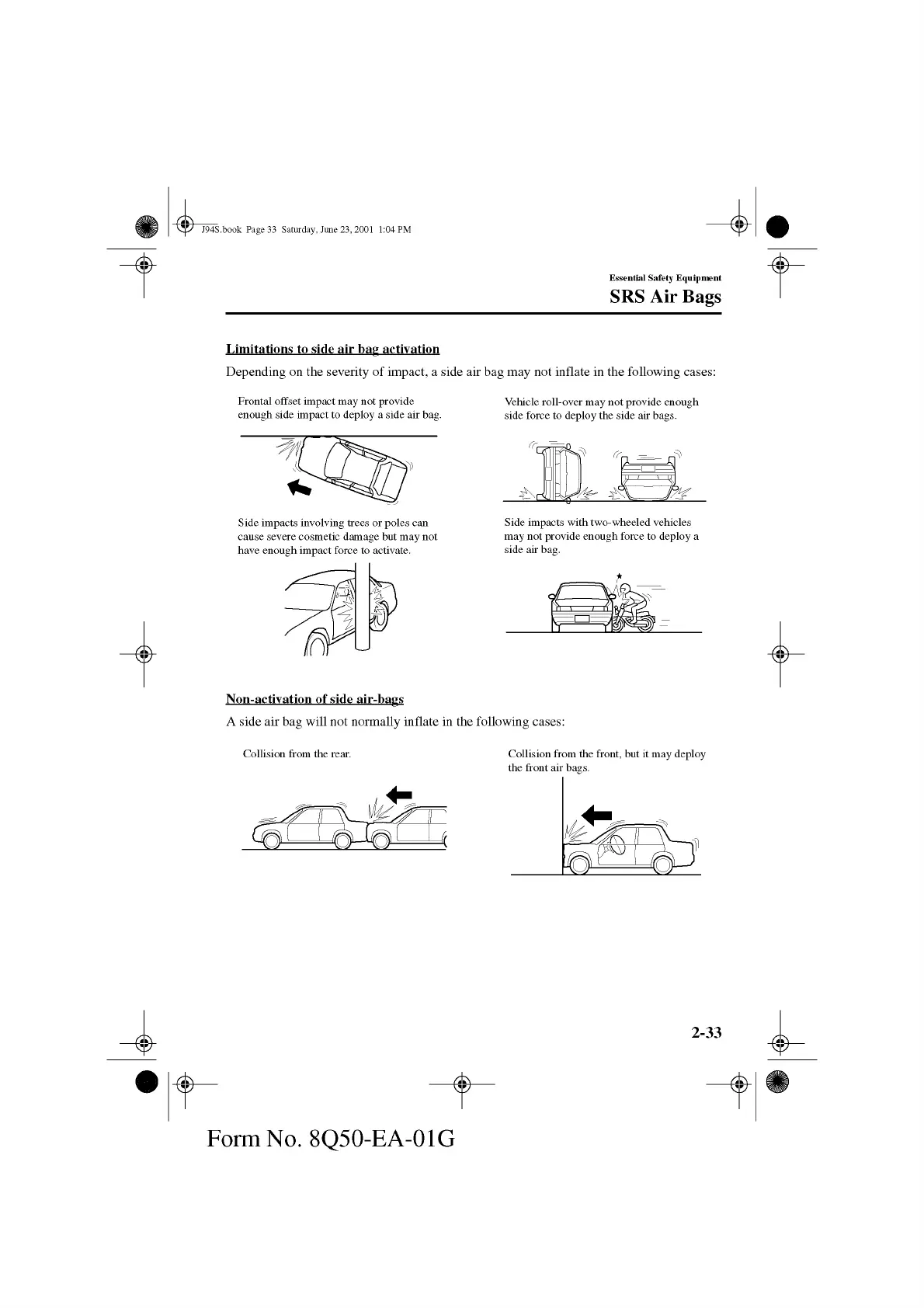 Depending on the severity of impact, a side air bag may not inflate in the following cases: