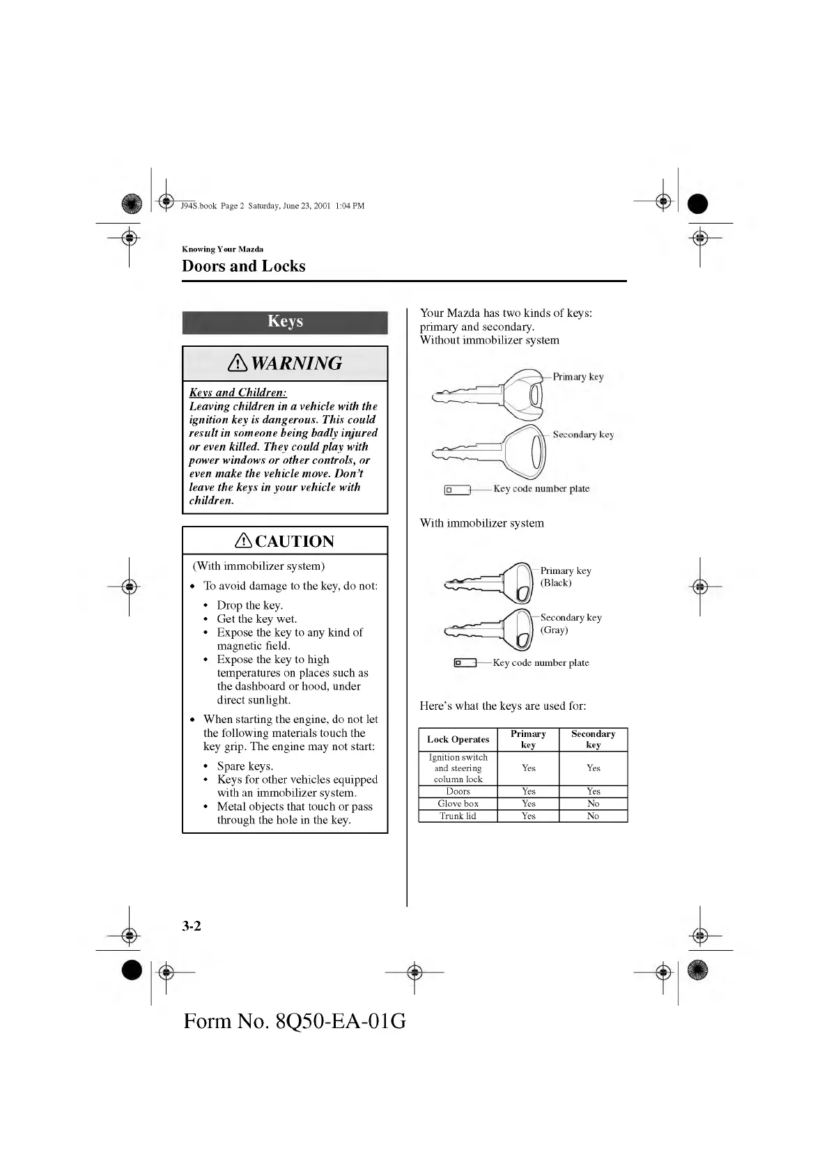 Your Mazda has two kinds of keys:
