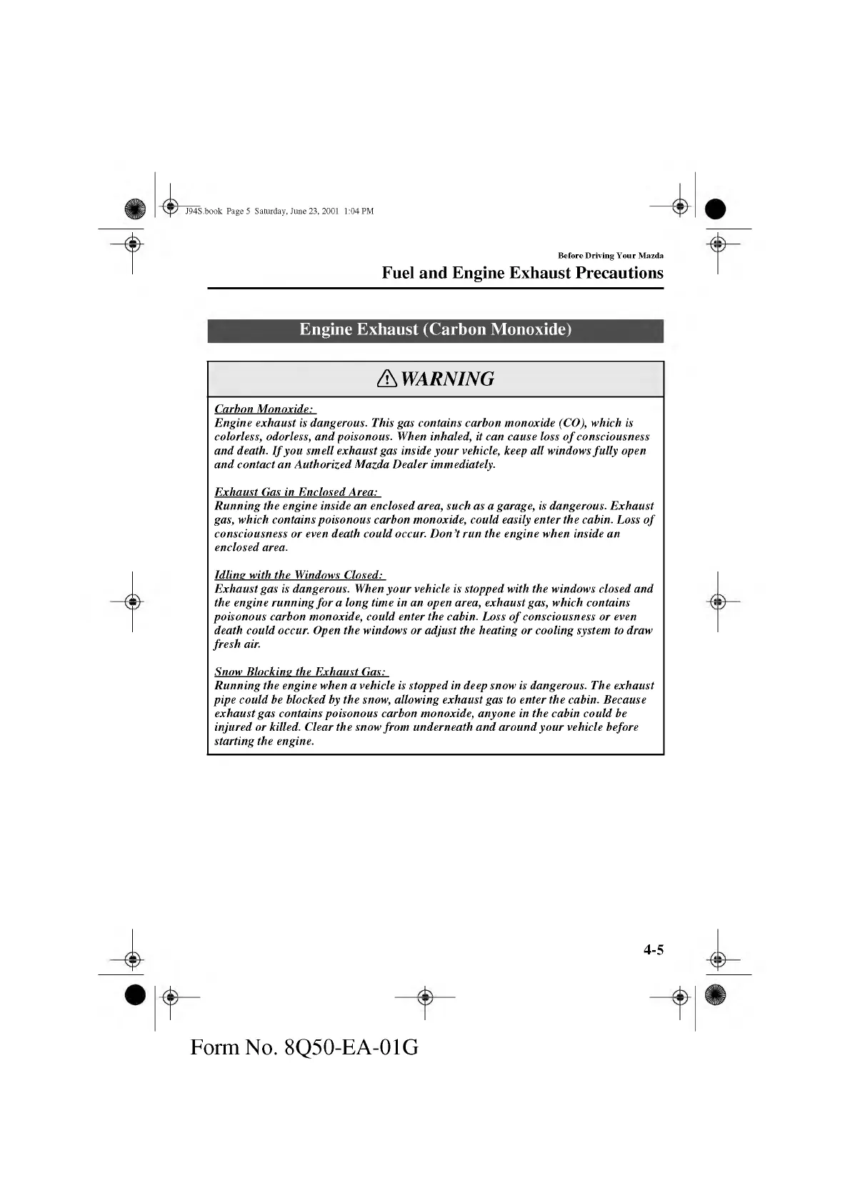 and death. If you sm ell exhaust gas inside your vehicle, keep all windows fully open