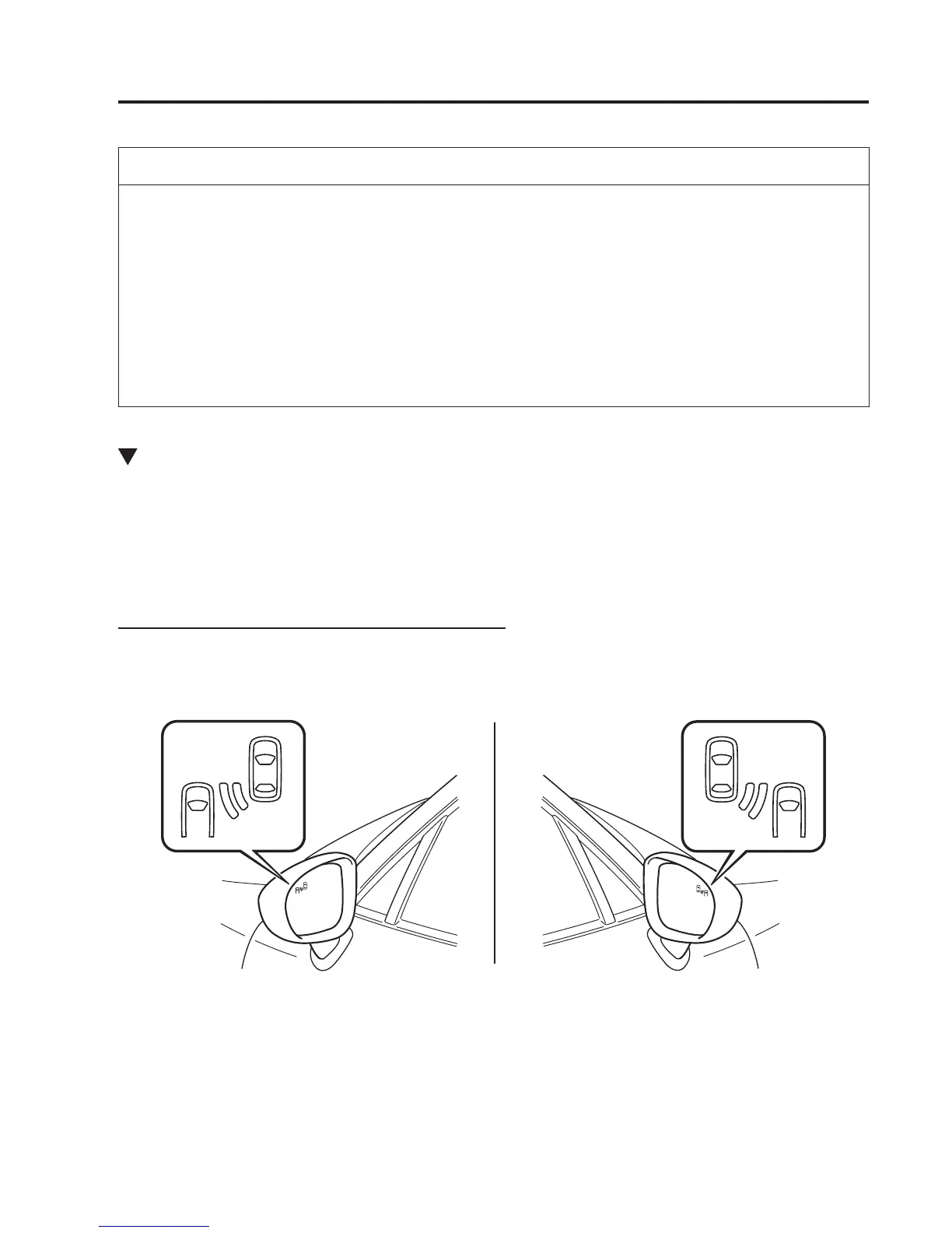 mirrors. The warning lights turn on when a vehicle approaching from the rear in an adjacent