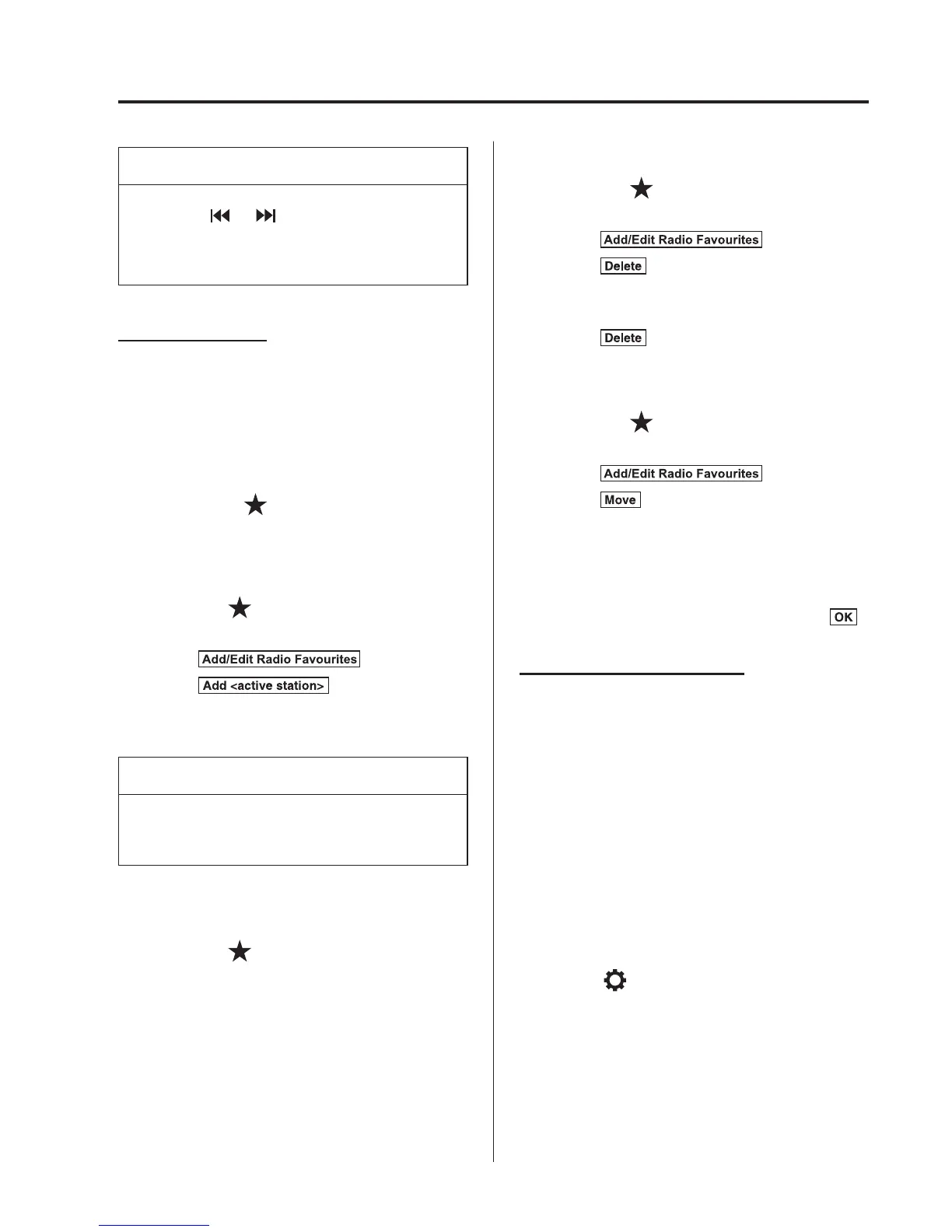 Selecting radio station from Favourites