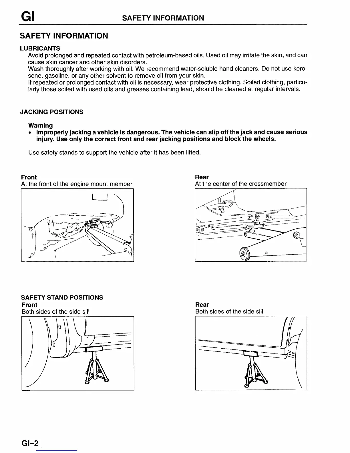 • Improperly jacking a vehicle is dangerous. The vehicle can slip off the jack and cause serious