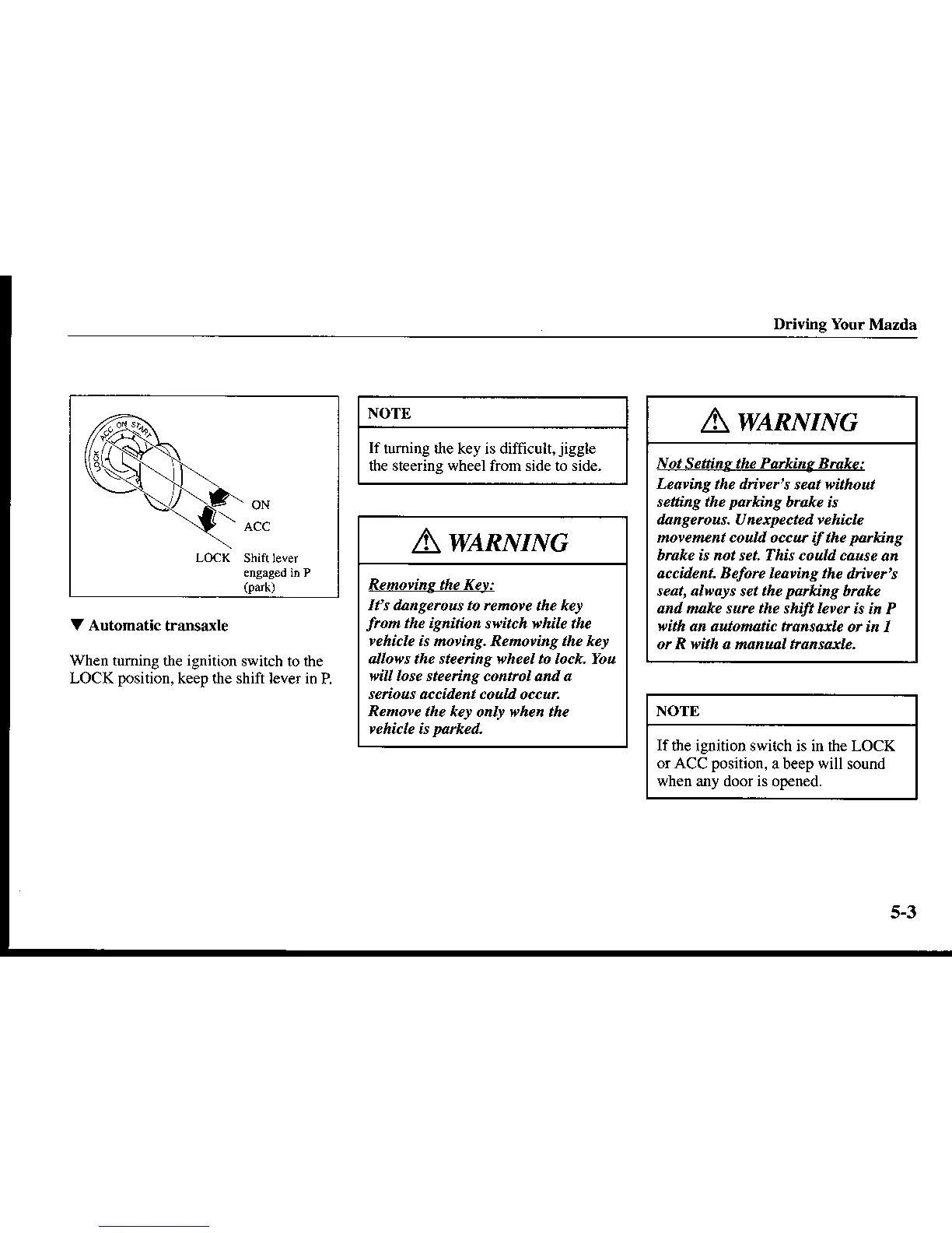 the ignition switch is in ille LOCK
