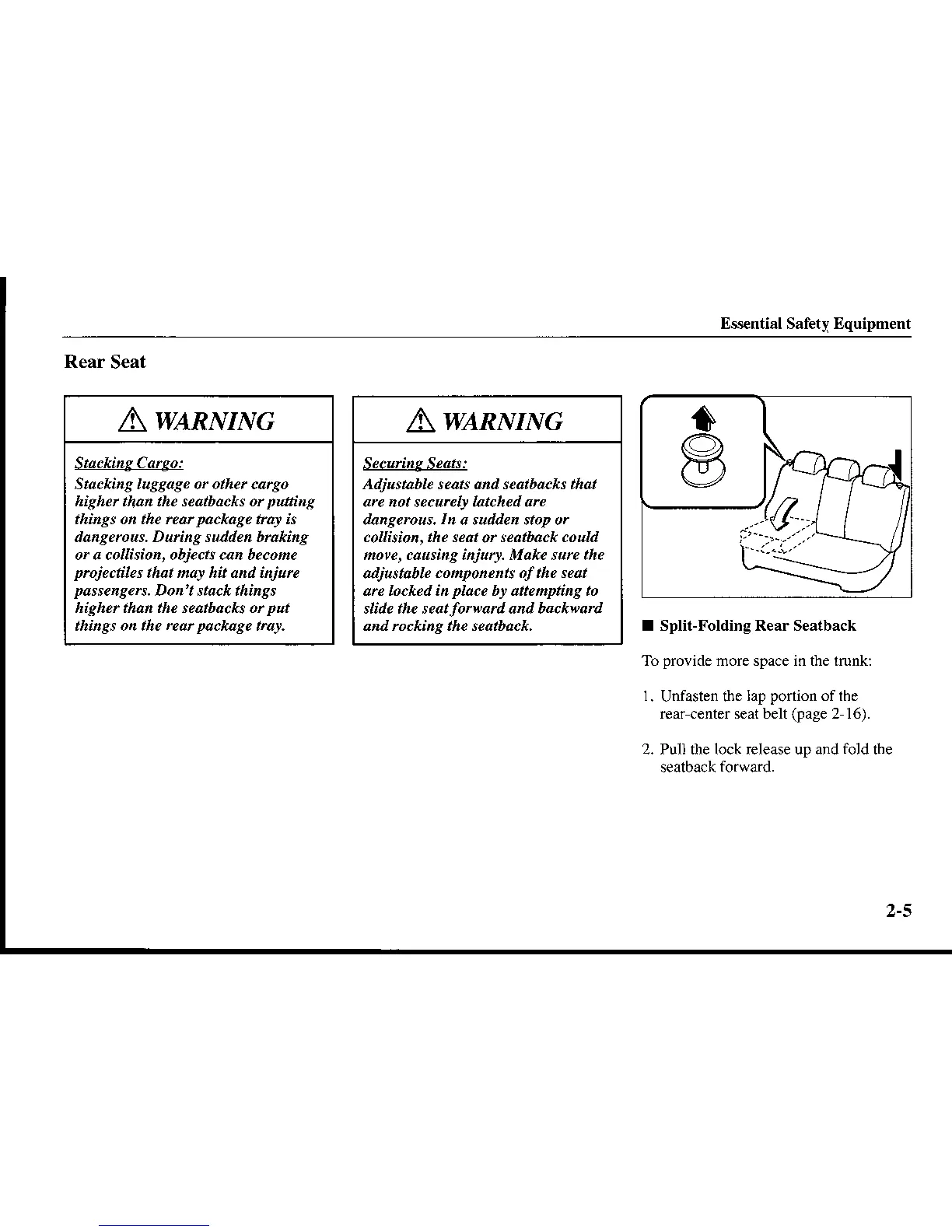 and rccking the seatback. I Split-Folding Rear Sealback