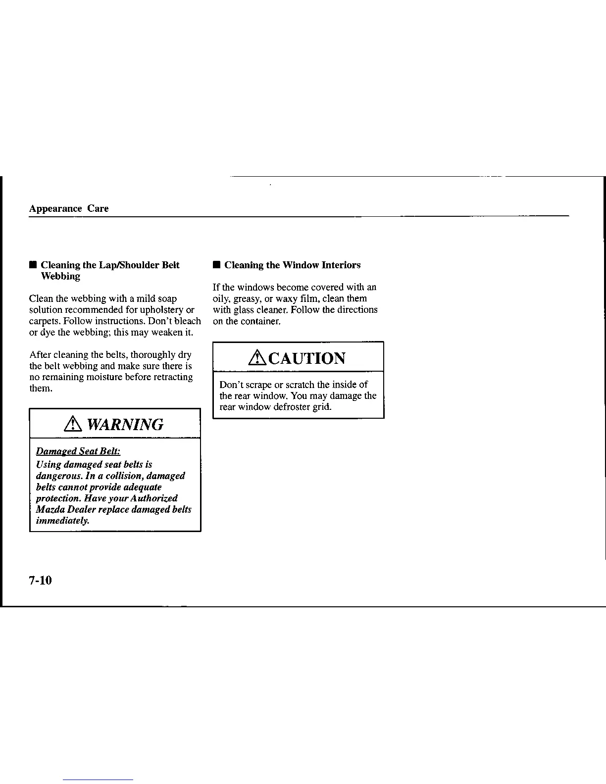 I Cleaning the Lap/Shoulder Belt I Cl€sning the Window Interiorc