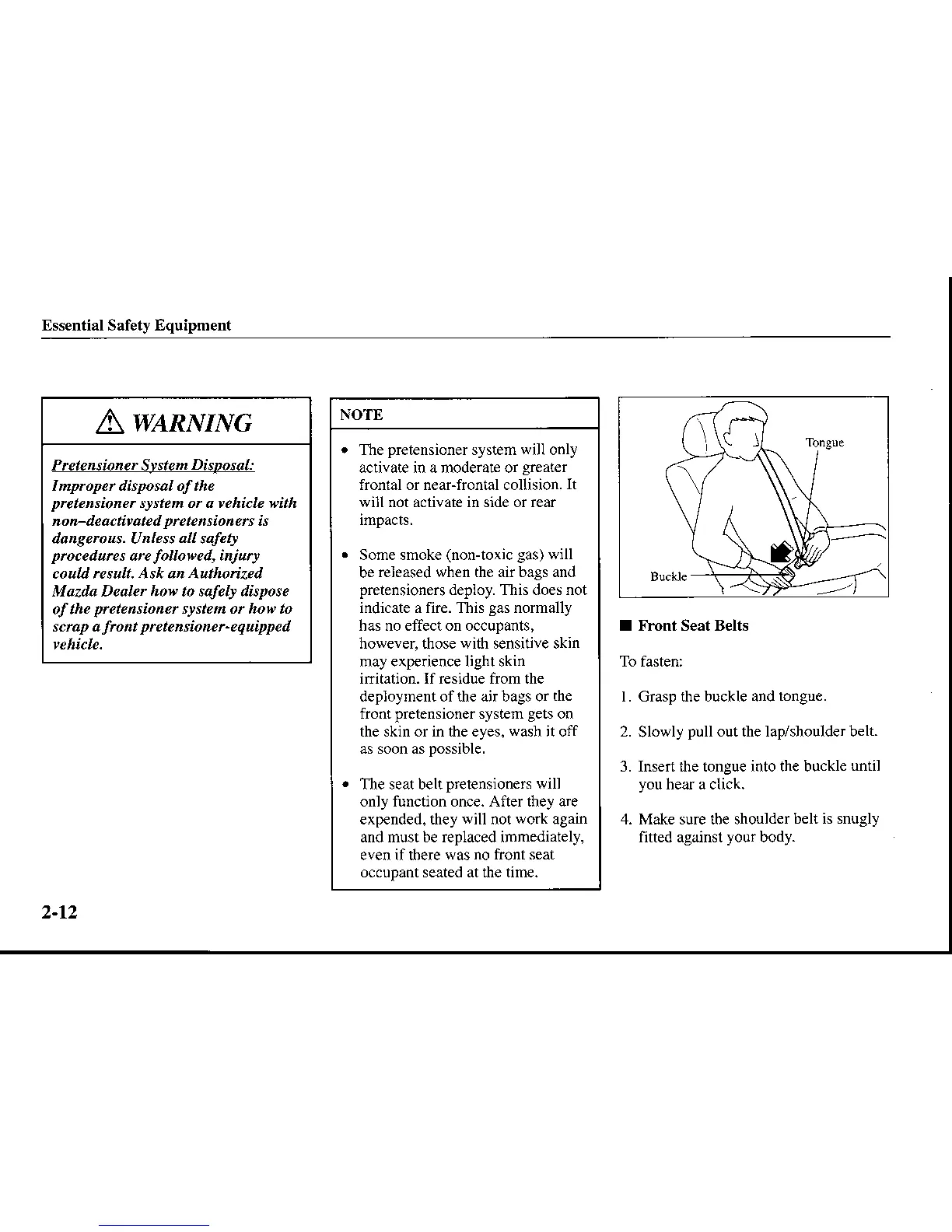 pntensioner-equipped I Front Seat Belts