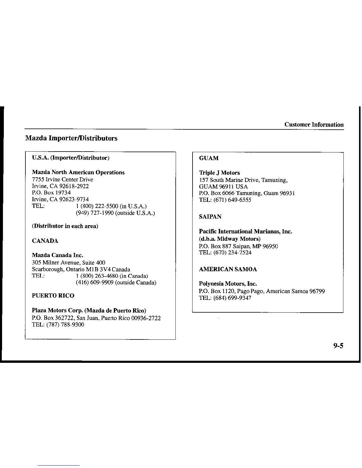 Mazda Importer/Distributors