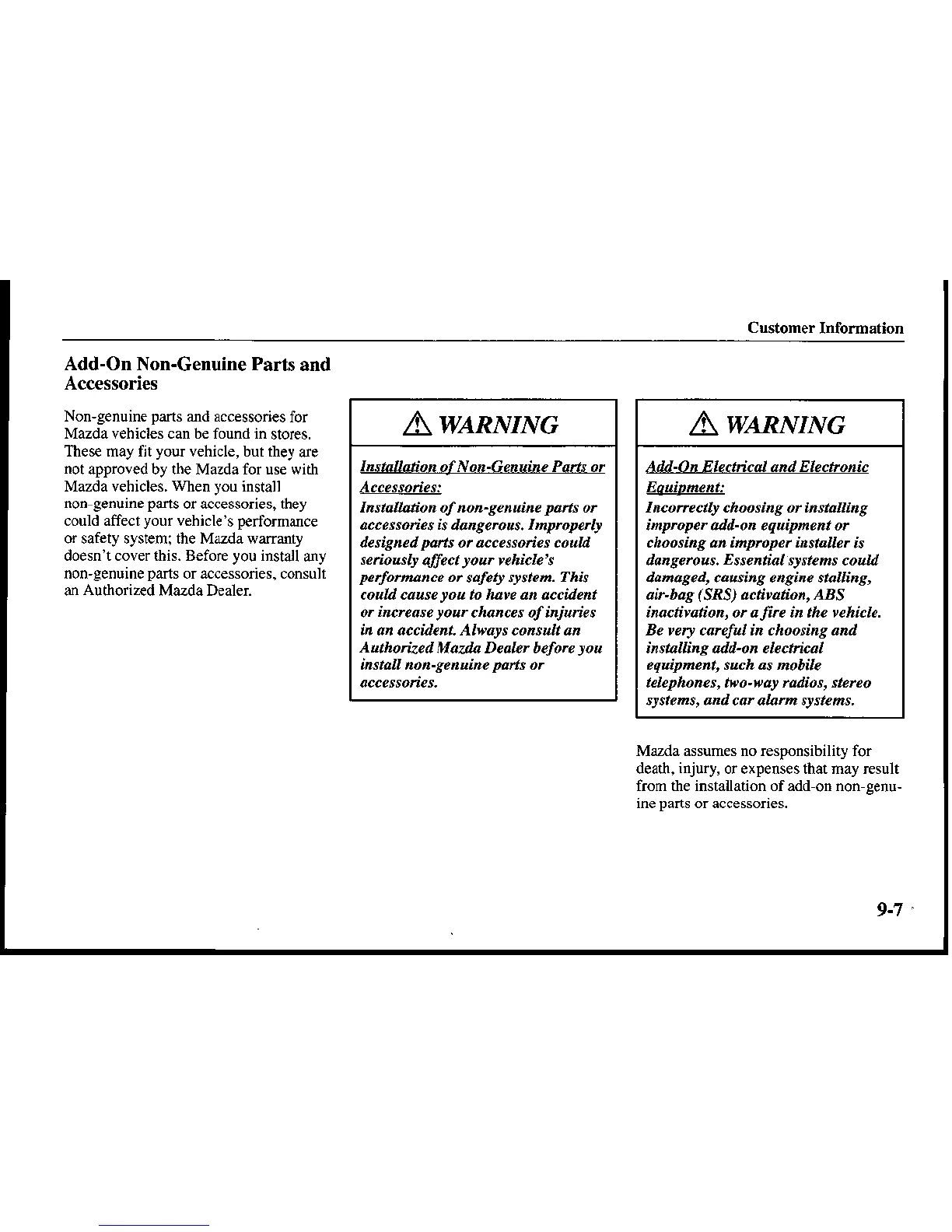 Mazda assumes no responsibility for